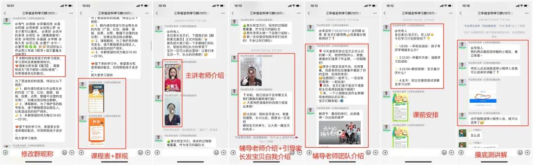 群内引导修改昵称和发自我介绍视频,并自己带头,给家长以真实感,并活跃群