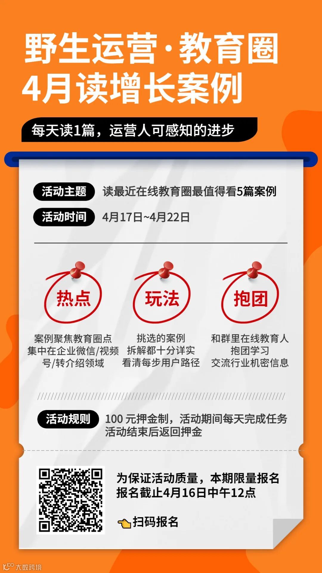 欢迎加入野生运营星球,每周一次快闪分享、教育圈一手资料、1V1答疑……等硬核干货,而且还能一次入手包括 《2020年教育圈增长案例合集》、3508 个在线教育圈案例合集全库、70 页下沉市场观察合集、93 场群分享的音频+逐字稿、N多运营工具包和资料,就问你一句,值不值?