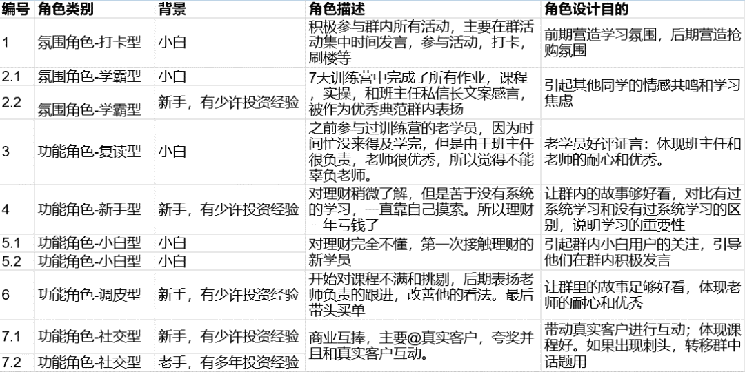 其次,对氛围团队的管理,开课前分配好每位成员的人设,把当天要配合的话术和时间点发给大家,晚上/第二天总结,看看哪位没有完成任务。