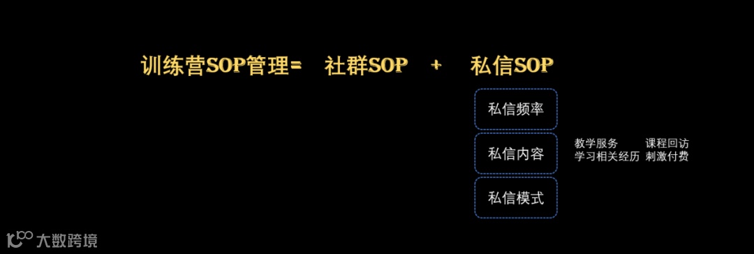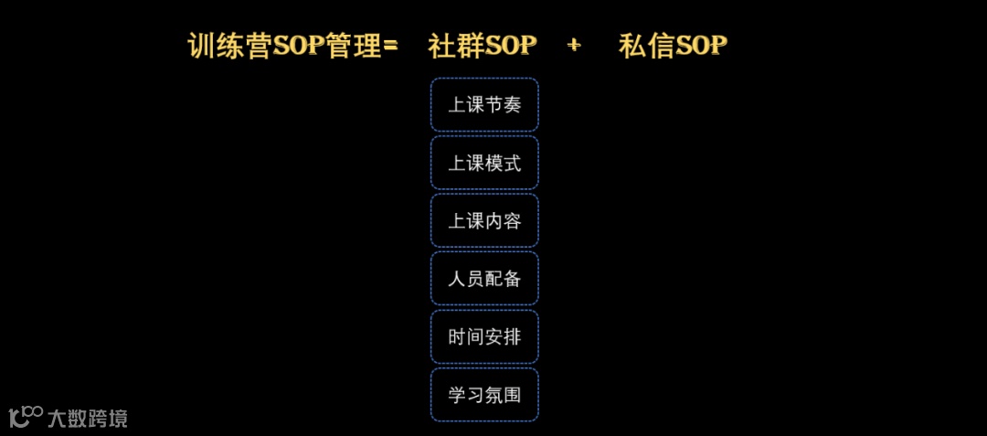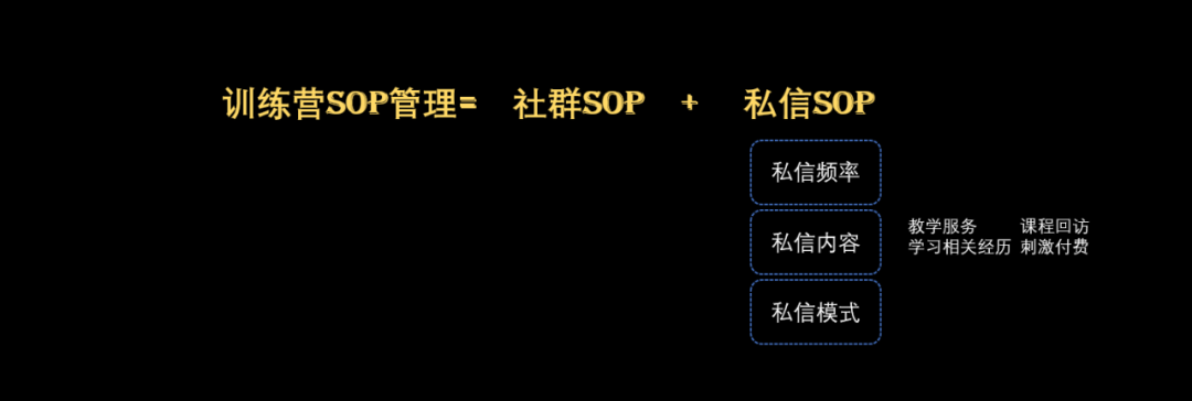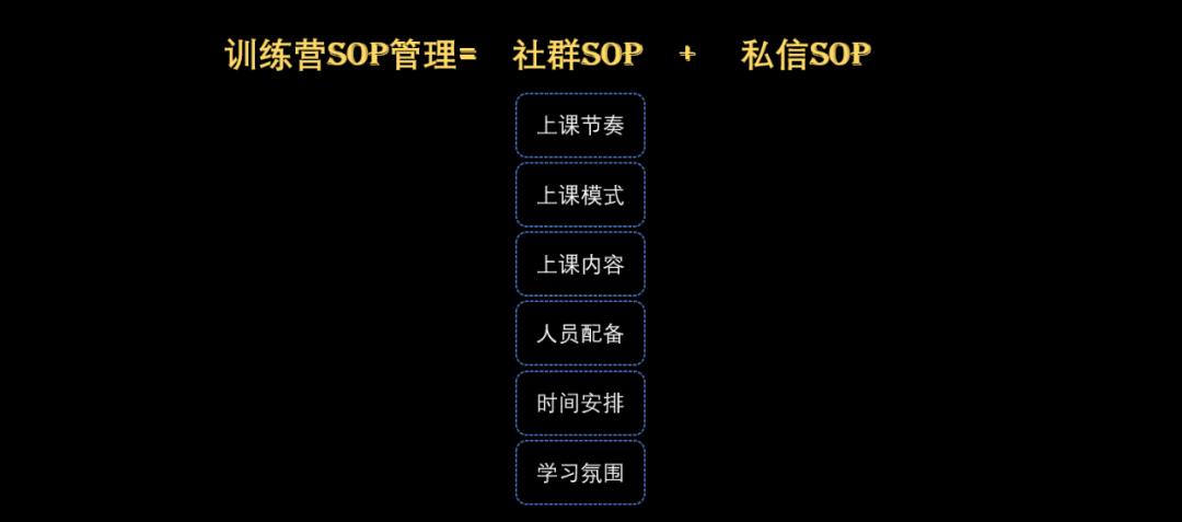 在训练营的角度,就是教学服务团队(班主任团队+氛围团队), 训练营SOP管理(社群SOP和私信SOP),训练营时间和人力时间规划