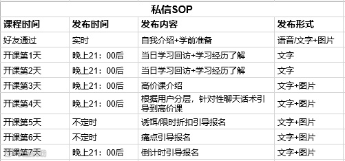 为什么训练营SOP这么重要,因为教学团队里的班主任和氛围小组都需要按照上面的流程和话术去工作,相当于SOP里面既包括销售策略也包含日常教学服务内容。