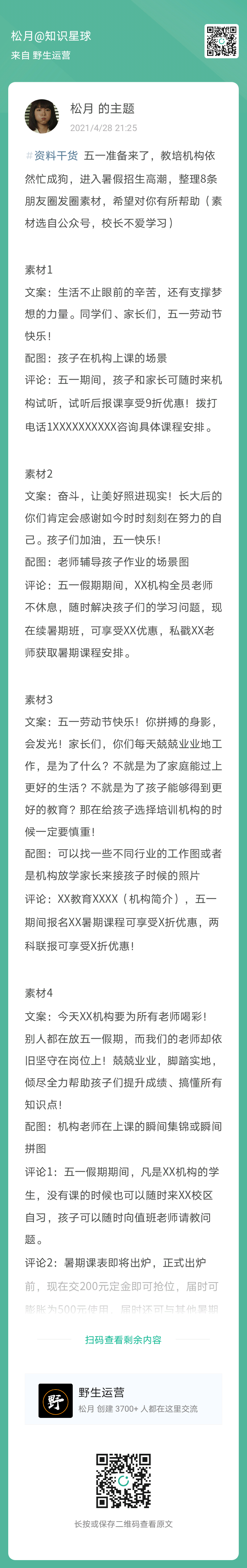 教培机构「五一招生」可用的8条朋友圈素材,希望对你有帮助👇