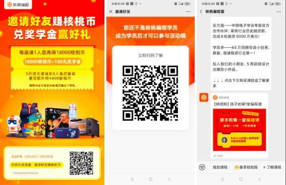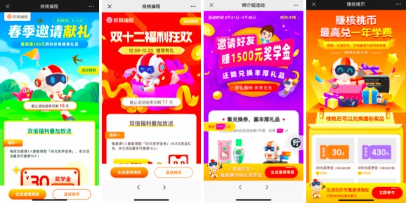 由此可见,核桃编程在新老用户区分上下了一番功夫,值得好好学习,只有有效区分好新老用户,才能让各自的运营效果最大化,毕竟新用户就该被转化,老用户就该促分享。