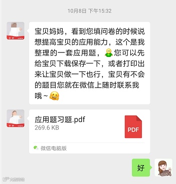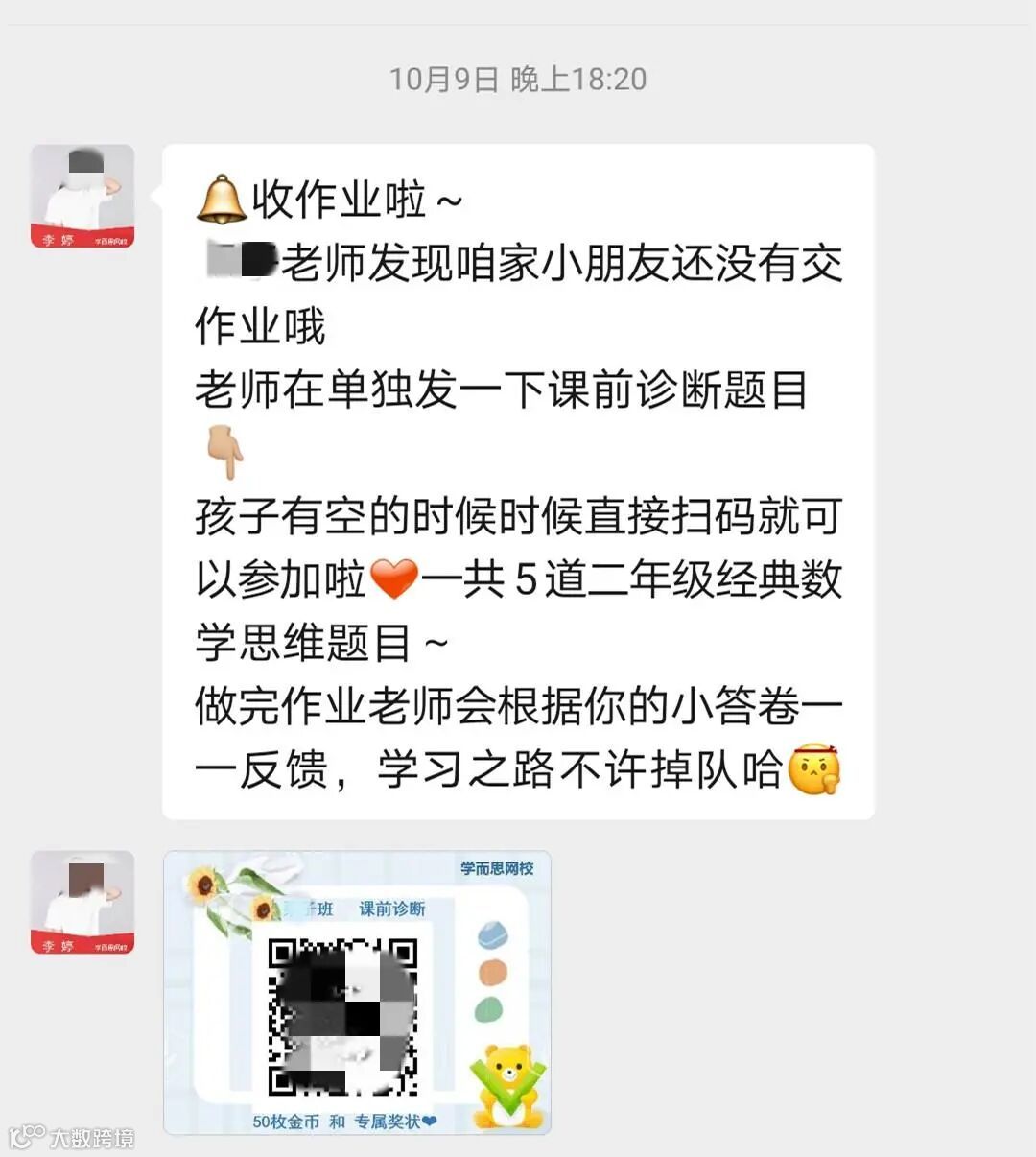 虽然我因为工作忙,并没有给孩子做,但这一操作让我对学而思老师的好感进一步升华,而我也不再“已读不回”了。
