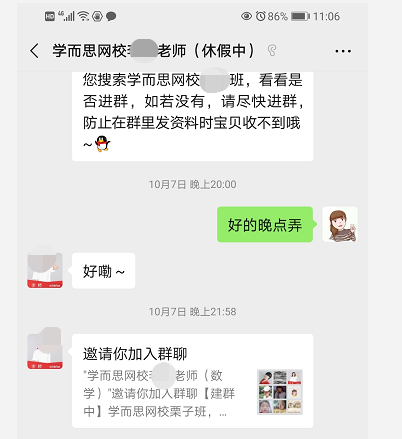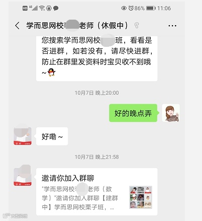 初加微信时,这位学而思老师连给我发四条信息,我都没有回复,即便她后来给我发了入群链接,我依然无动于衷。