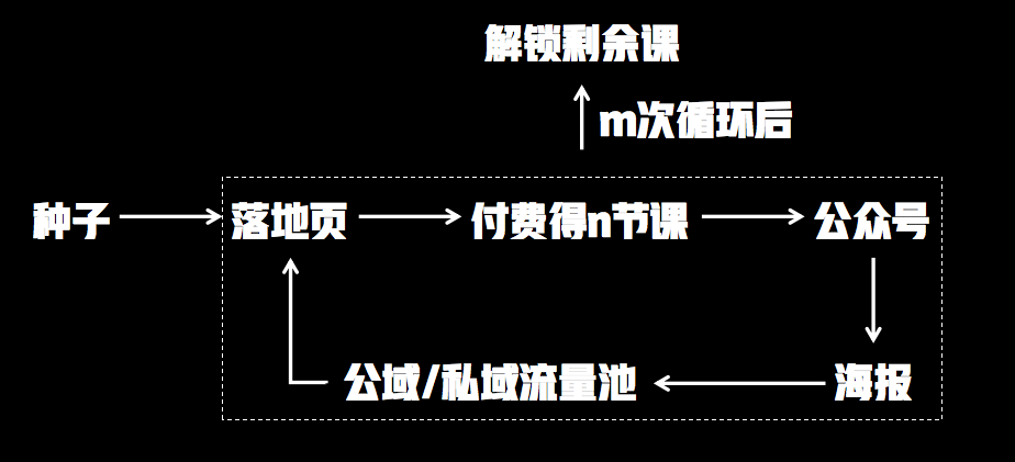 因为前面说了解锁课程内容丰富,而且每个产品都用解锁机制,这里面有很强的导流操作空间,简单来说就是在付费后的下一步可以倒流到任意公众号,依据产品定位可以匹配给不同的公众号,或者像任务宝一样仅仅出于分流防封的考虑。