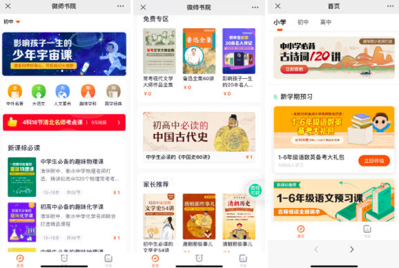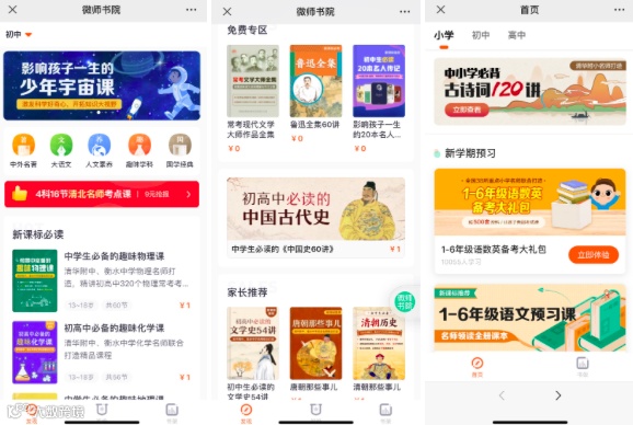 同时,解锁课程的SKU也非常丰富,每个SKU的选取很有说道,都是k12阶段用户感兴趣的内容:中外名著、国学经典、人文素养、趣味学科等等,都是很容易带来流量的内容类型,尤其是名著、文史、理化等课程,很容易吸引家长消费。