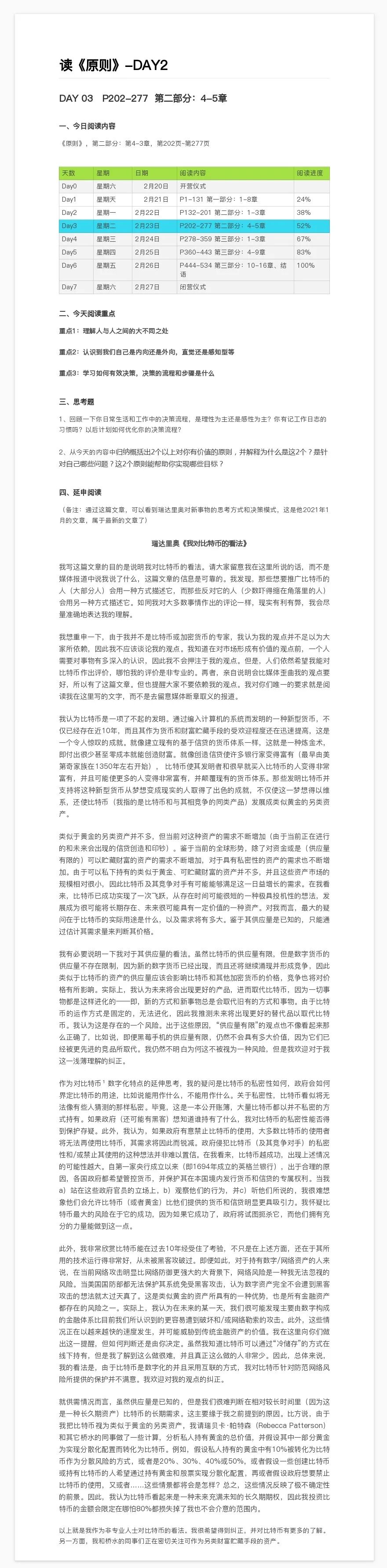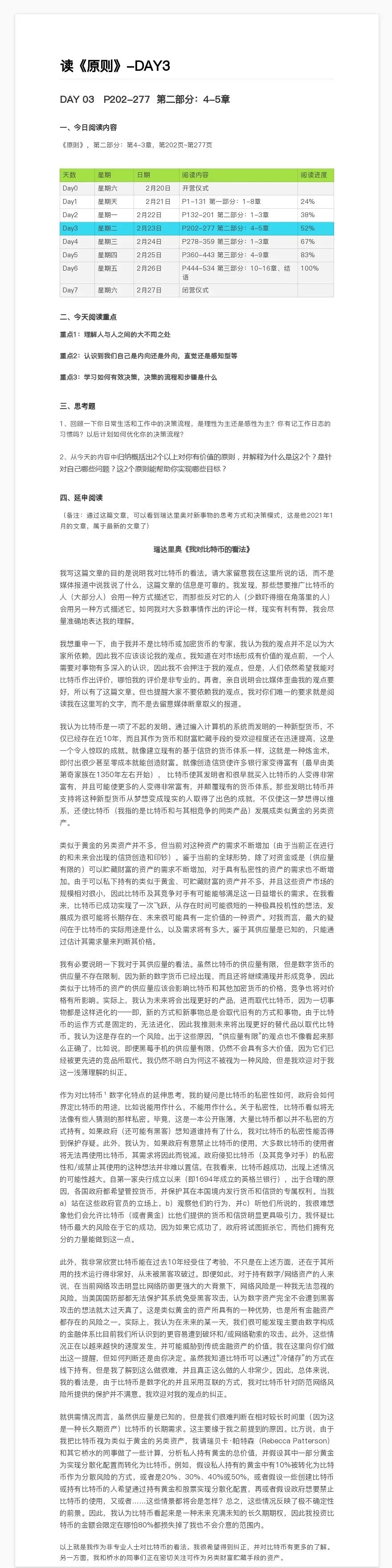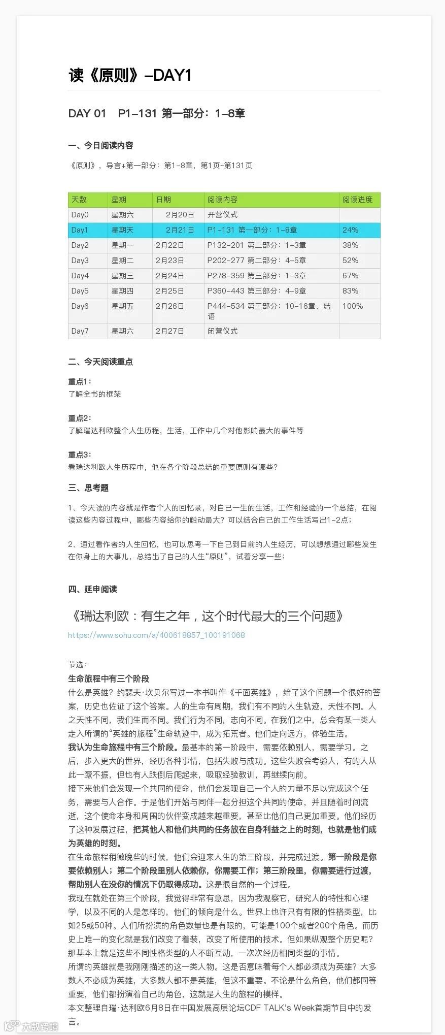 2月21日-2月27日,野生运营读书会结束了第 27 本书《原则》的共读,7 天时间领读人金大哥带大家读完了全书精华部分。感谢金大哥的7天领读,《原则》这本书是一本你遇到了,就会感到相见恨晚的书,也是一本值得二刷三刷的好书,未来读书会也会按照大家的需要再次带领阅读此书。