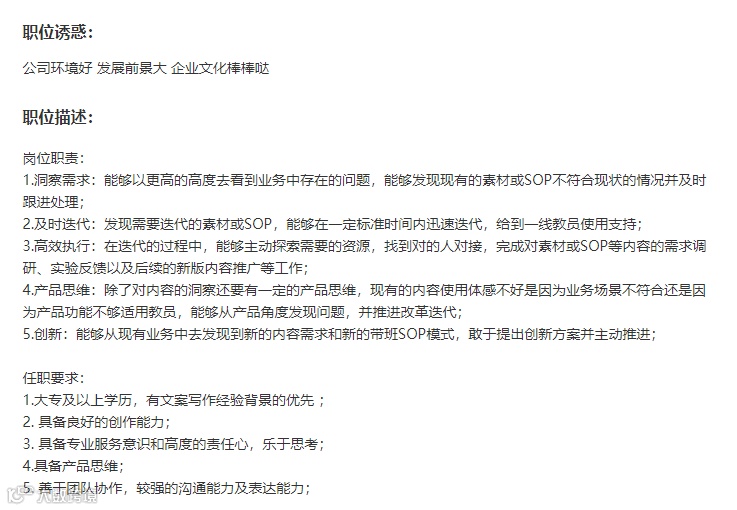 2、2年以上文案/编辑相关经验,教育课程产品转化型文案经验优先