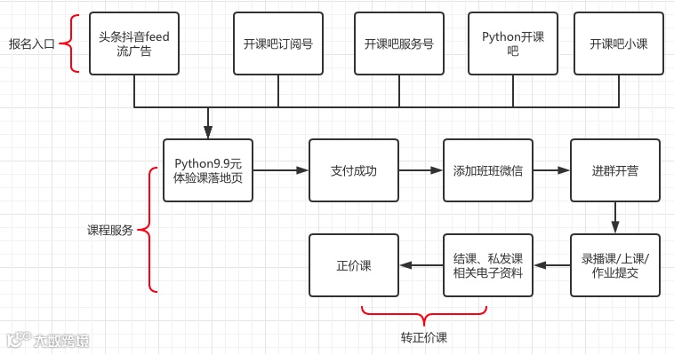 Python办公自动化近年来在网上炒的比较热,我们在朋友圈、短视频平台都见到Python自动化办公的广告,讲述掌握Python语言对日常办公有多便利等场景。大学毕业前学会使用,像网易云课堂、腾讯课堂、虎课网、达内、传智播客等学习平台都有相关的课程,从体验课、到正价课的转化一系列流程中。开课吧的学习Python社群服务在转正价课时有些亮眼的动作值得学习,想拆解开课吧在低价体验课在转转正价课如何设计社群服务的。