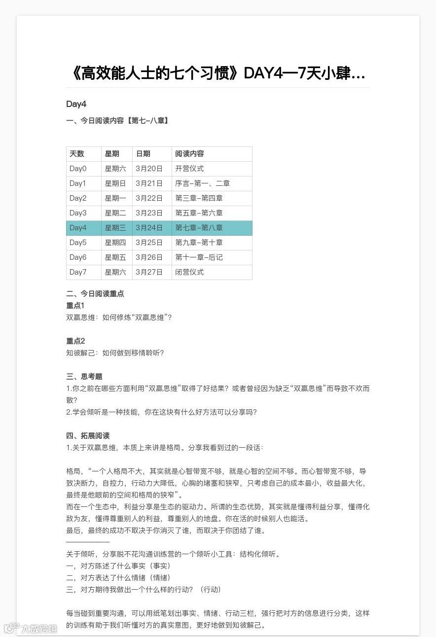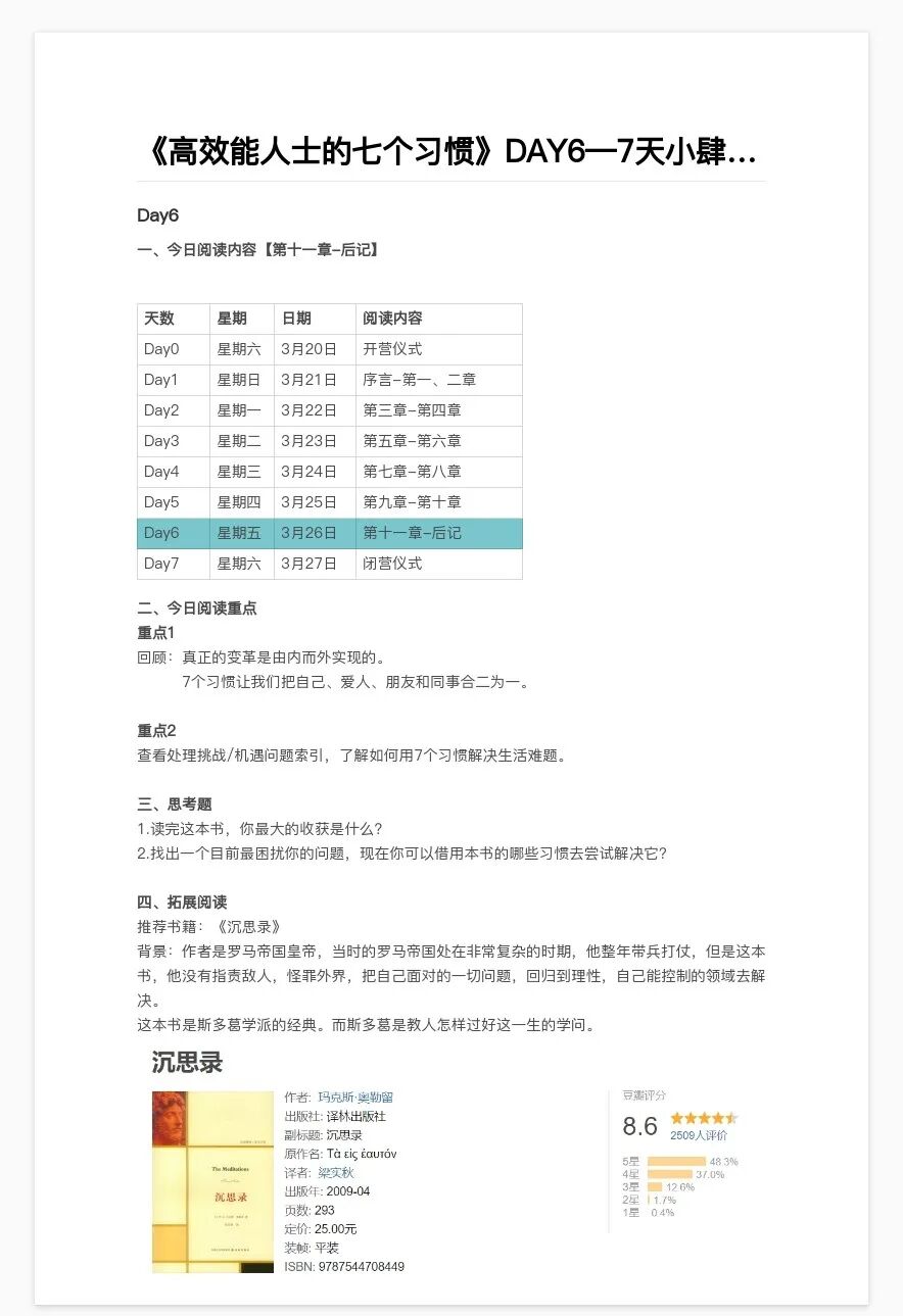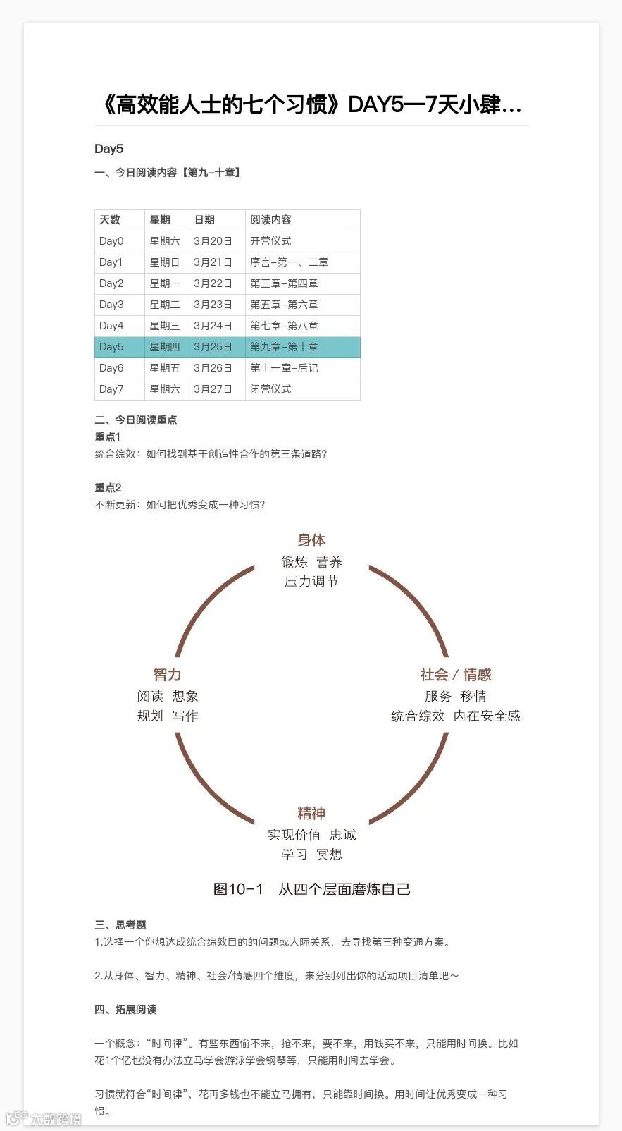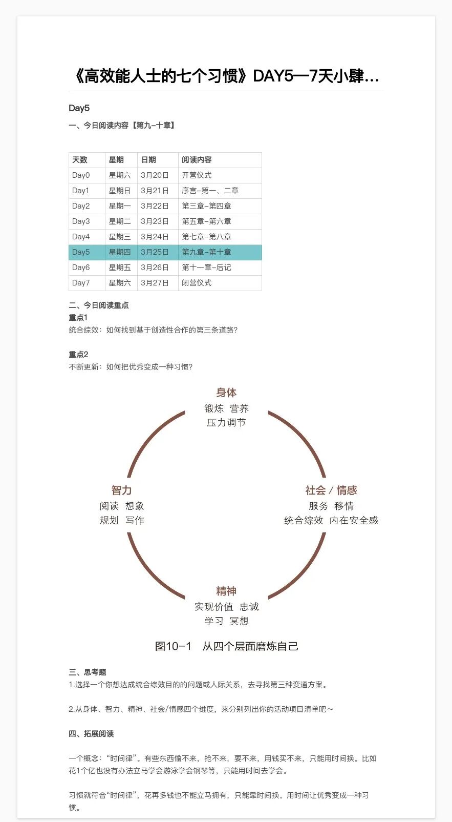 3月21日-3月27日,野生运营读书会结束了第 29 本书《高效能人士的7个习惯》的共读,7 天时间领读人小肆带大家读完了全书精华部分。感谢小肆的7天领读,在这个越来越忙碌的当下,我们需要的不是“挤时间”,而是聚焦要事,用书中提到的7个习惯,帮我们提升效率,过自由的人生。