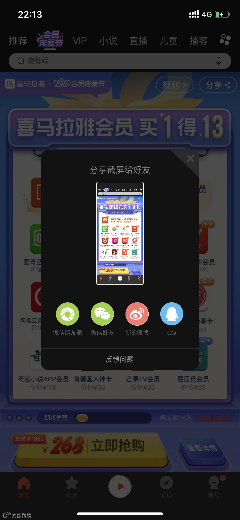 喜马拉雅app—顶部会员宠爱节/客服消息推送—268元立即抢购