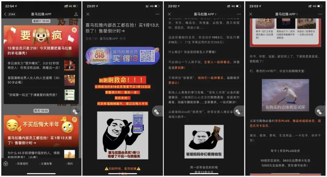 发送推文:喜马拉雅公众号在下午4点发布:13家会员只卖218!今天就要把喜马拉雅的羊毛薅秃了。(低价吸引,充分把握用户心理)