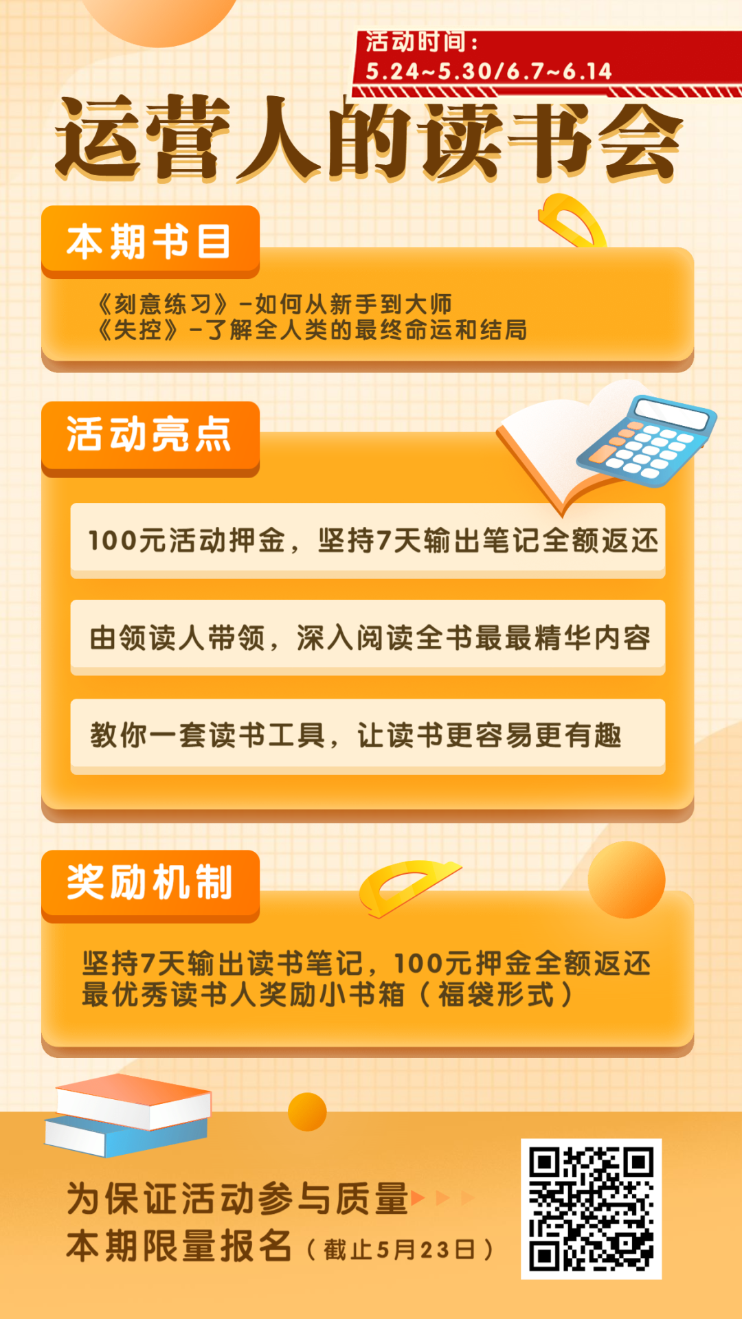 野生运营读书计划已出炉,报名可扫下方二维码: