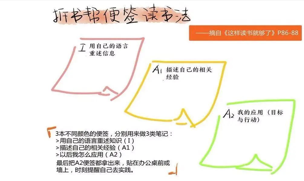 第八步,用此法读完整本书后(或者读完自己认为值得读的部分之后),把所有的A2便签拿出来贴在墙上,提醒自己日后应用、改变行为。