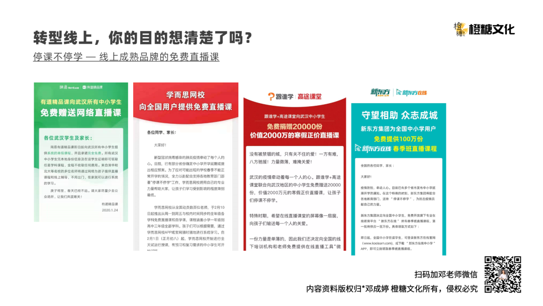 你想想,你不做,你的客户习惯了线上课程之后,肯定是会被蚕食的。