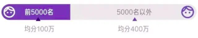 更鸡贼的是,它会在5000名旁边标注“xx件”,目的是告诉你消费到这个数量,就能分到更多钱,至于背后的原因,是它把500万分成了两部分,一部分是前5000名均分100万,每人200块,另一部分是5000名开外的,瓜分400万。