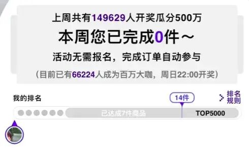 在逐鹿百万大咖活动里,通过邀请好友组队,两个人即可完成每周消费7件商品的任务,彼此能获得奖金和称号,就是借鉴了合作机制。