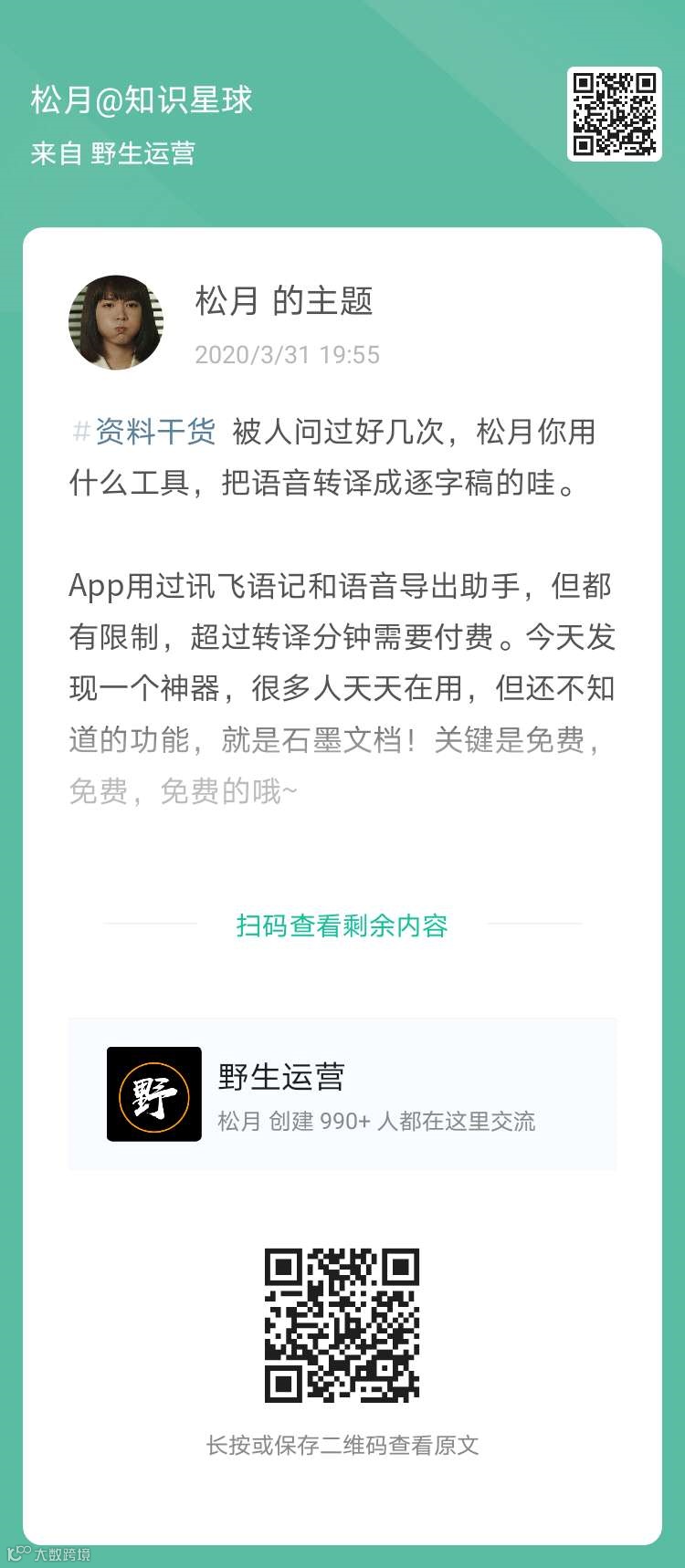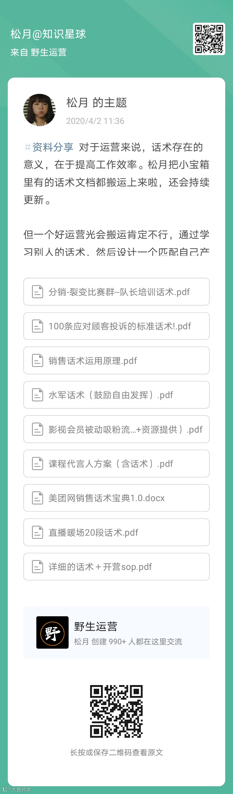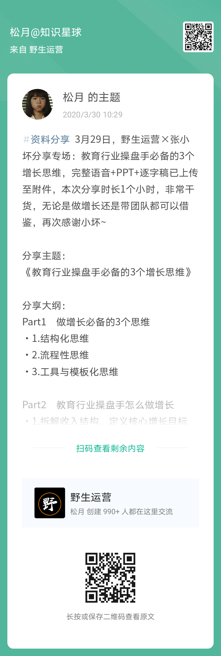 关注野生运营那么久了,还没有加入微信群?组织向你发出邀请,如果你也是从事在线教育和知识付费的小伙伴,可添加松月微信,并备注【公司-职位-姓名】,就可以加入咱们的社群啦!