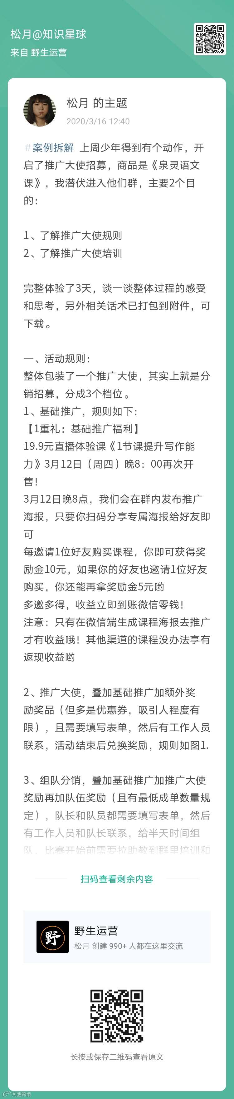 了解野生运营社区的小伙伴都知道,咱们有个王牌活动:教育圈增长案例拆解。在松月看来,第6次教育圈增长案例拆解活动,在这个时候回归再合适不过了。修炼内功,你强了,世界才会变得容易。