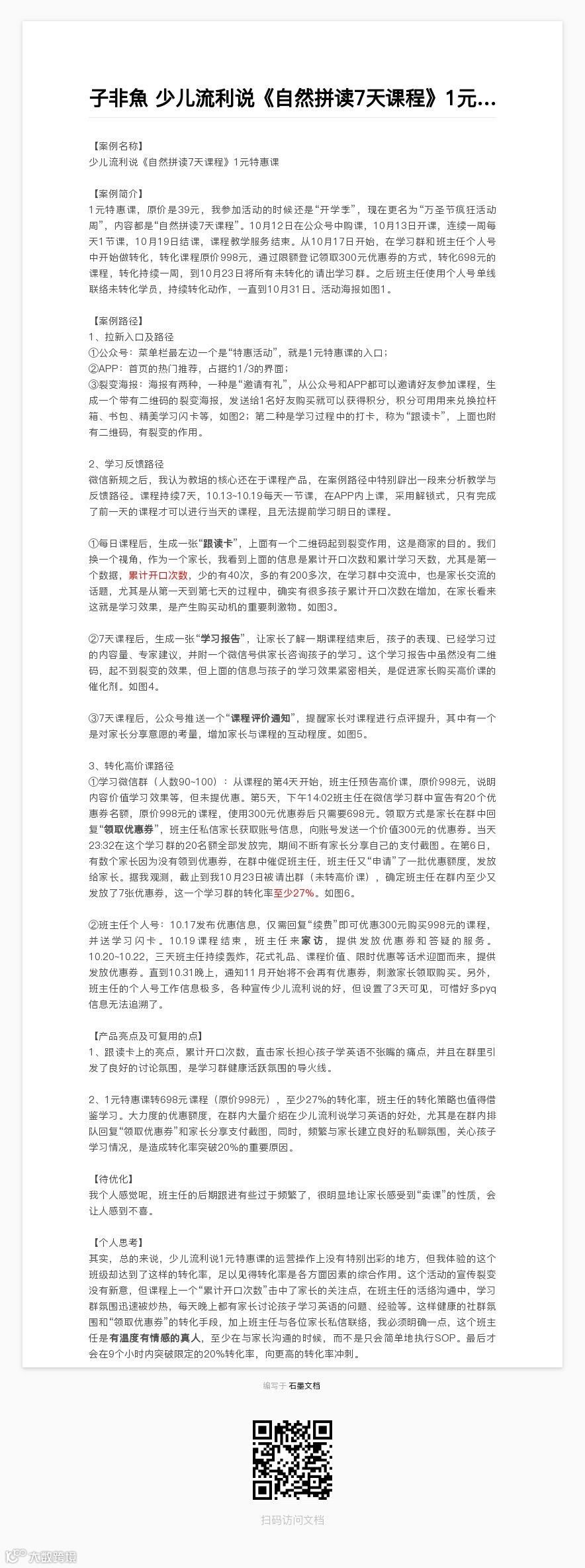 一个人走的快,一群人走的远,第3期【野生运营】教育圈案例拆解活动又来啦!本活动依然为100元押金制,活动时间12.6~12.13,7天活动只要坚持5天就全额返还押金,其中拆解最好的赢1000元现金!