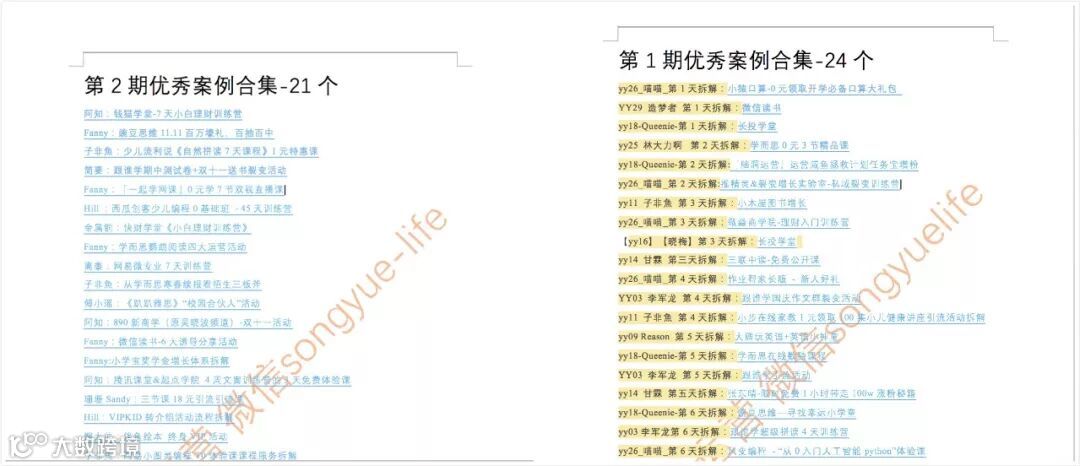 2、凡报名就赠送第1期+第2期优秀案例拆解,共45个