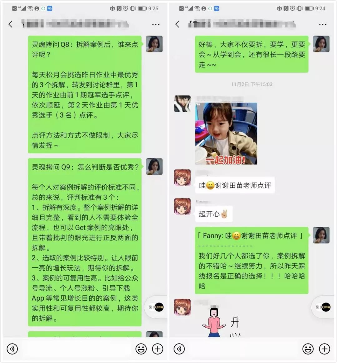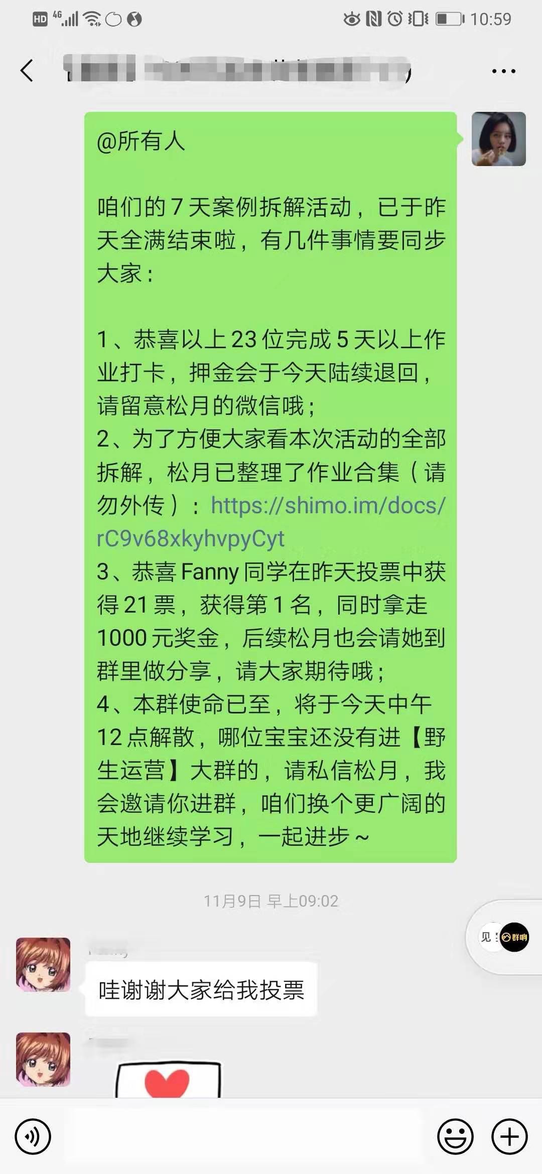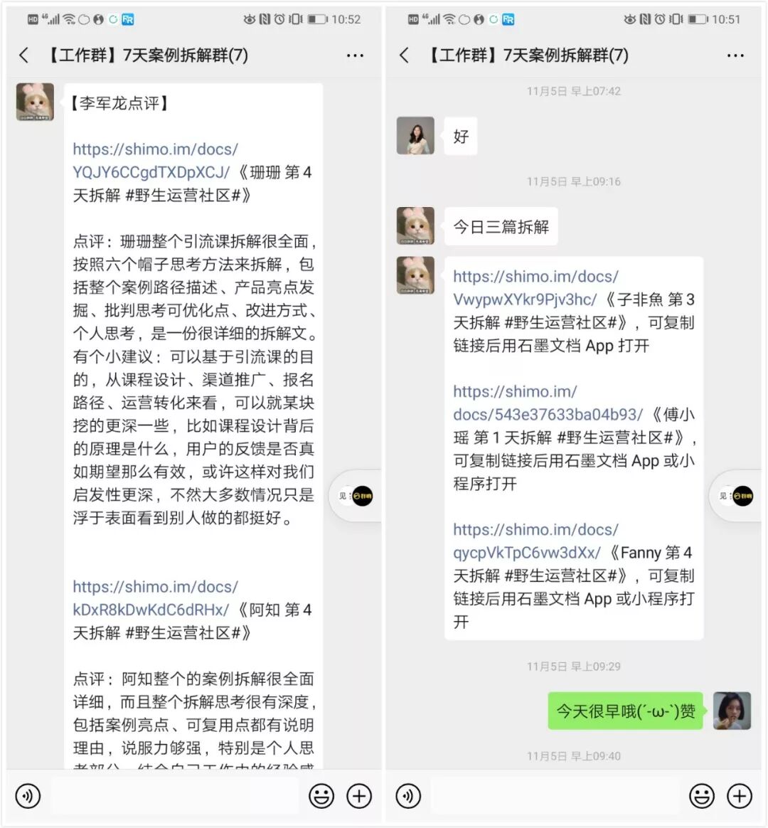 本次活动松月还组建了个核心群,负责每天从提交的案例拆解里挑选TOP3,增加参与小伙伴们对何为优秀案例拆解的体感: