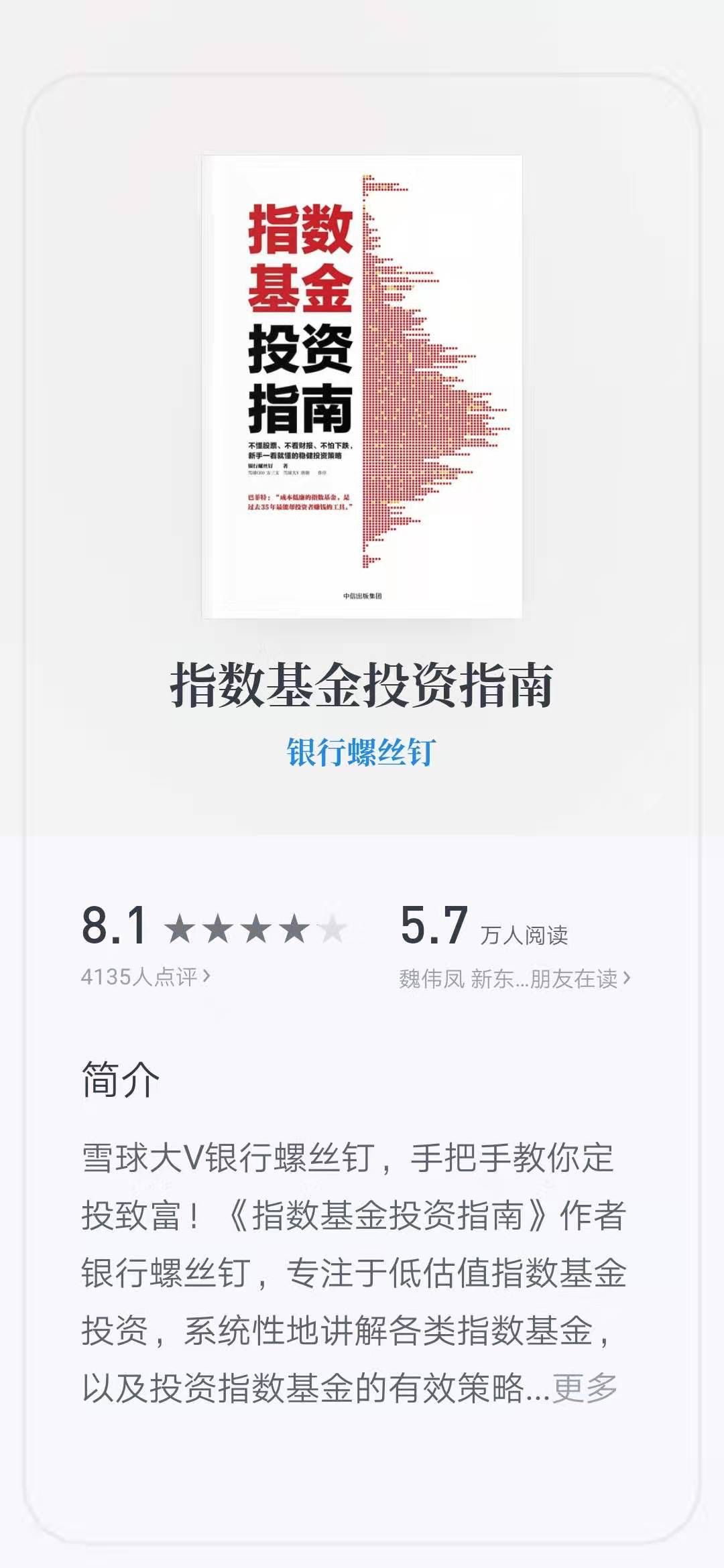 推荐大家看这本书-《指数基金投资指南》,对小白也很友好。指数基金真是个好玩的玩意,坚持定投,我的太阳花养老院在60岁就有了~