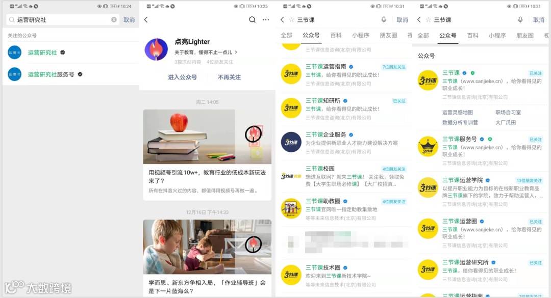 三节课的公众号矩阵基本成型,除了日常推送的主账号之外,其他服务号主要承担裂变增量的作用