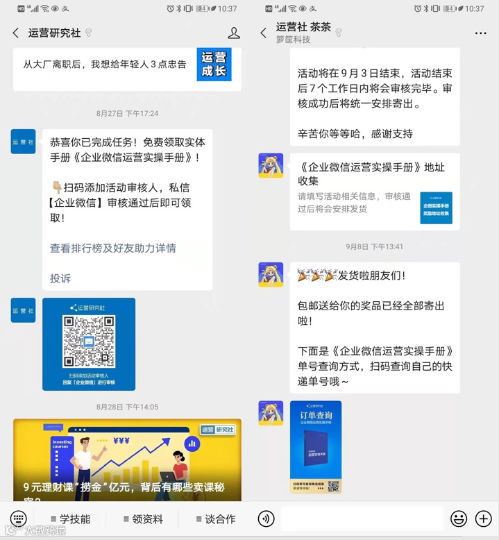 对于运营社来说,首先是有大量运营人员的基数,同时借助企微官方背书,很容易形成快速传播。再加上之前有在公众号上进行部分分享,让用户对内容有了一些认知,进而促进传播