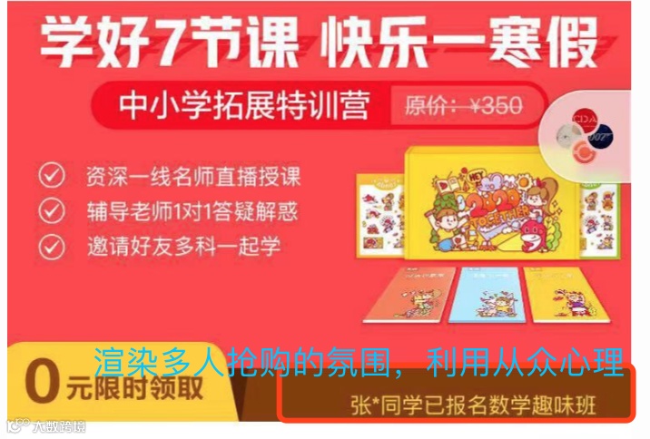 (2)提高落地页打开率:海报设计需要足够吸引力,引导分享到精准用户群,比如班级群,能够吸引到同班同学的家长报名;