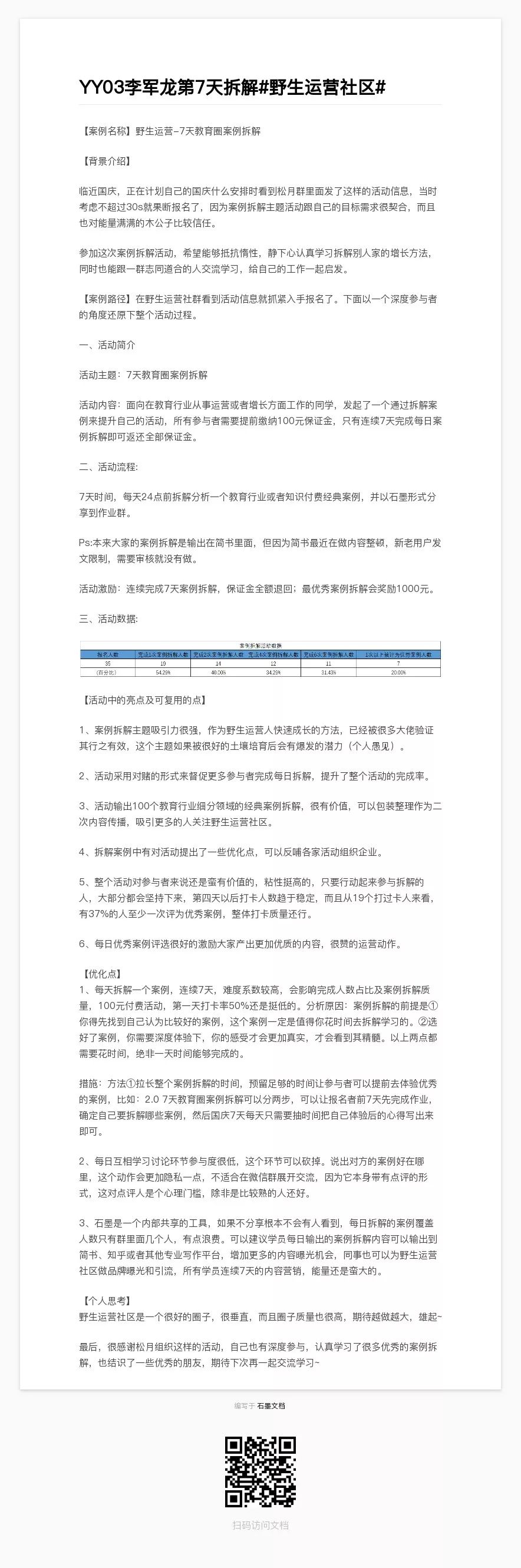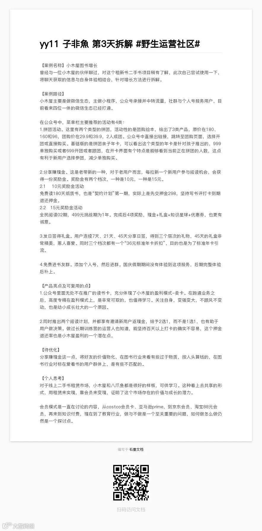 野生运营社区,专注于在线教育和知识付费领域的增长,主理人松月在国庆节前(也是距离2020年整整100天)发起了个变态的“教育圈增长案例拆解活动”,7天放假也不让人休息,但就是这样,一群人还大呼,被虐的好爽: