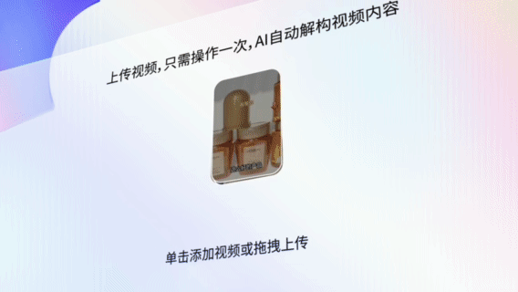 视频通过轻量的卡片呈现,可灵活拖拽,AI大模型接收视频数据后,会将视频解构的流程一一告知,即减少了用户在流程里的等待焦虑,又加强了人与AI的结果对齐。