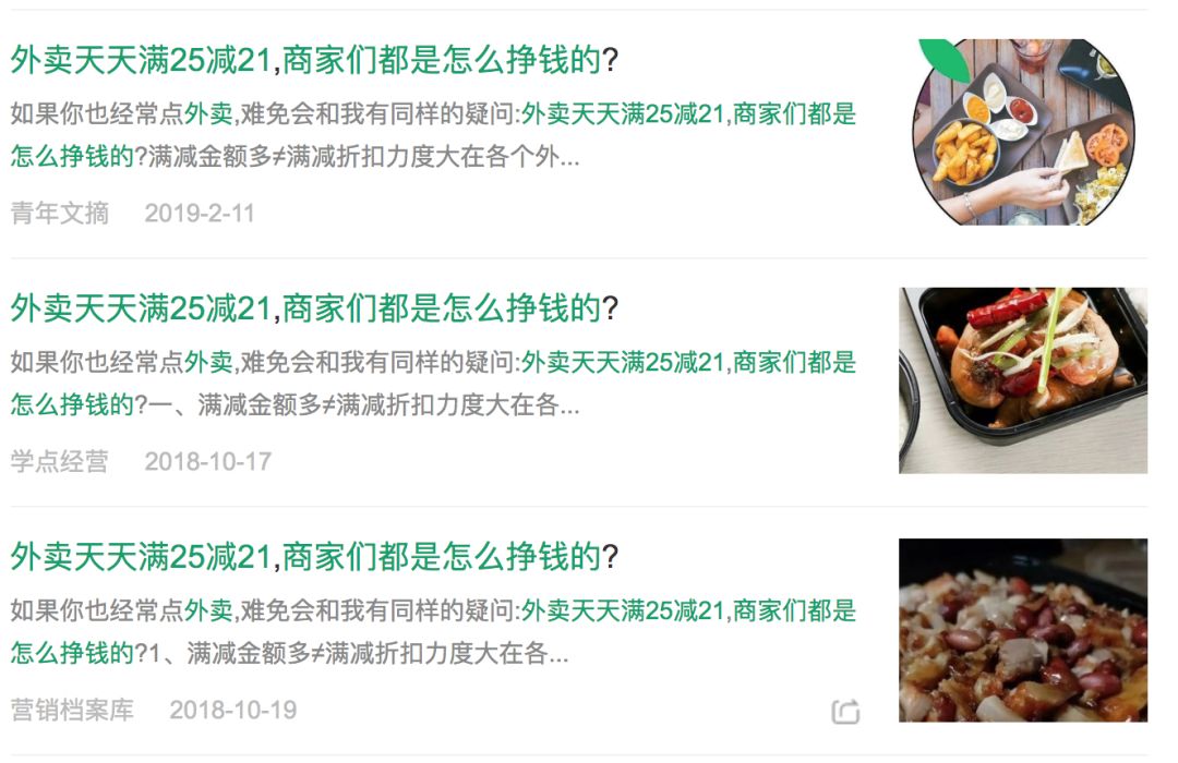 去年有段时间我一直在思考“外卖盈利”的问题,通过以上这种思考方法,沉淀出一篇《外卖天天满25减21,商家们都是怎么挣钱的》,先后被虎嗅App、36Kr、钛媒体和腾讯众创等100余家媒体等转载,目前通过这篇加为好友超1500人。