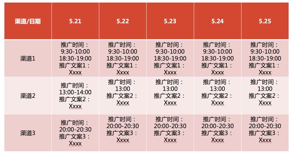 (3)制定推广计划表,合理安排推广节奏,便于执行,以及根据实际情况灵活调整;