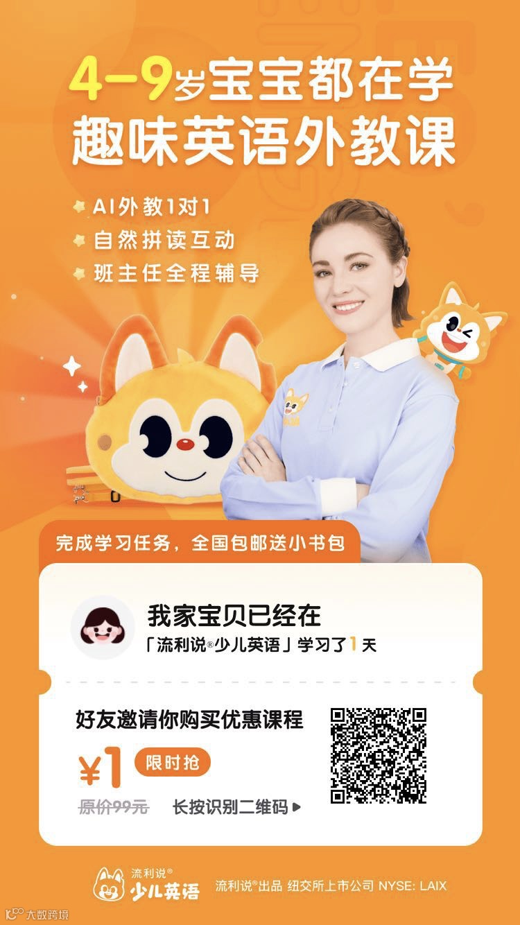 3、满足家长炫耀心理,增设打卡展示,我家宝贝已经在流利说少儿英语学习了XX天。这是惯用的手法,让家长有机会展示孩子努力学习的状态或学习效果。