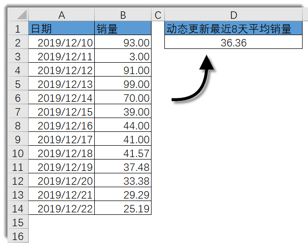 比如目前平均值区域是B7:B14;但当我在B15填入一个新的销量,平均值计算区域就应该自动更新为B8:B15……