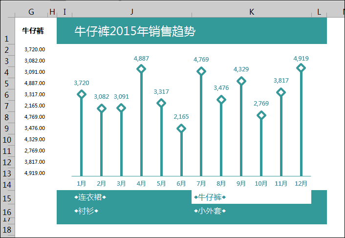 只要光标滑过不同的商品名称,图表就会自动变化,是不是很炫酷啊。