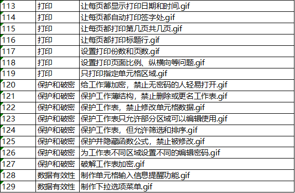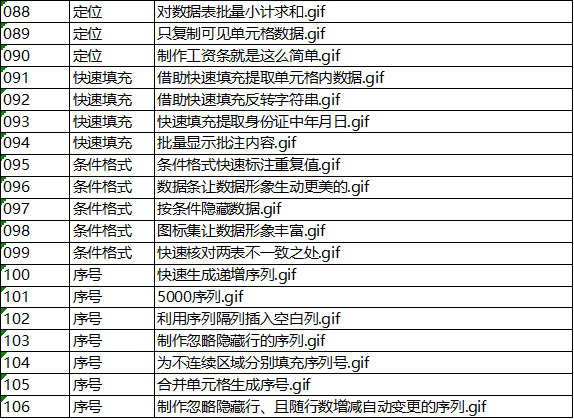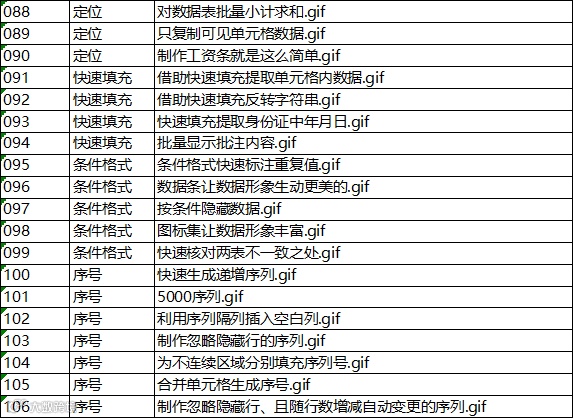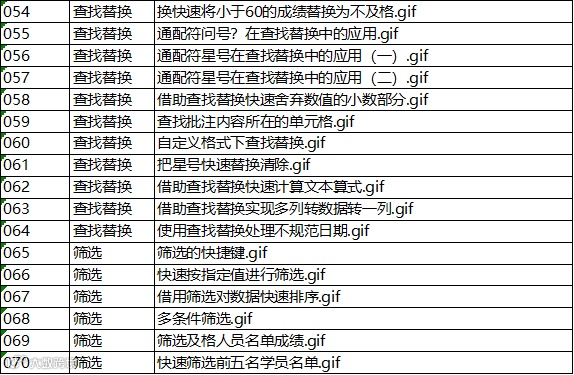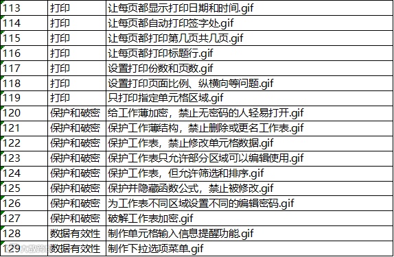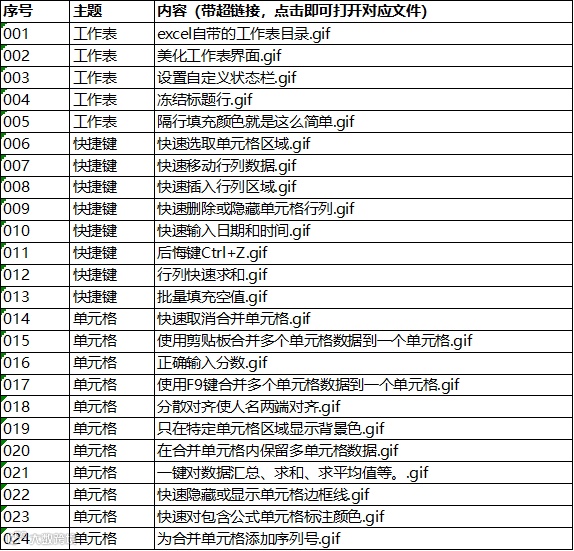内容几乎涵盖了Excel最常用的基础操作技巧。快捷键应用、单元格处理、工作表保护、查找替换、复制粘贴、筛选、条件格式、数据验证、分列、定位、甚至常用函数等等~