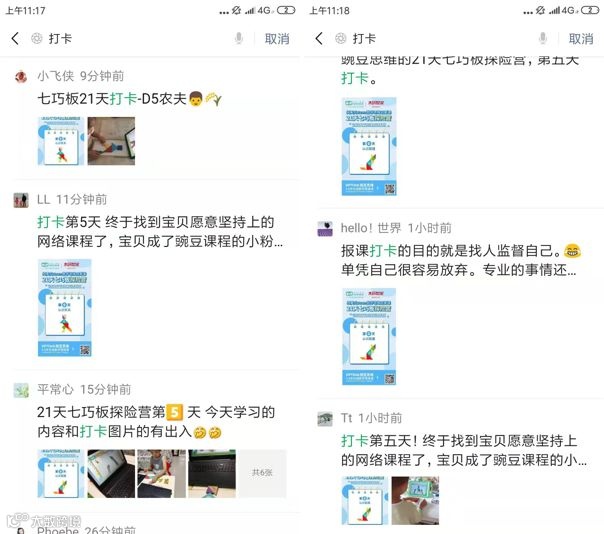 用户把低价课分享到朋友圈,转化的是对七巧板感兴趣的直接付低价用户,这些用户朋友圈还有大量数学思维的潜质目标用户,是能被转化吸纳过来的。只要让这些用户持续是发朋友圈为平台宣传,那就能把用户朋友圈的意向用户吃透。因此平台结合21天的课程设计了打卡就能领DK书的环节。