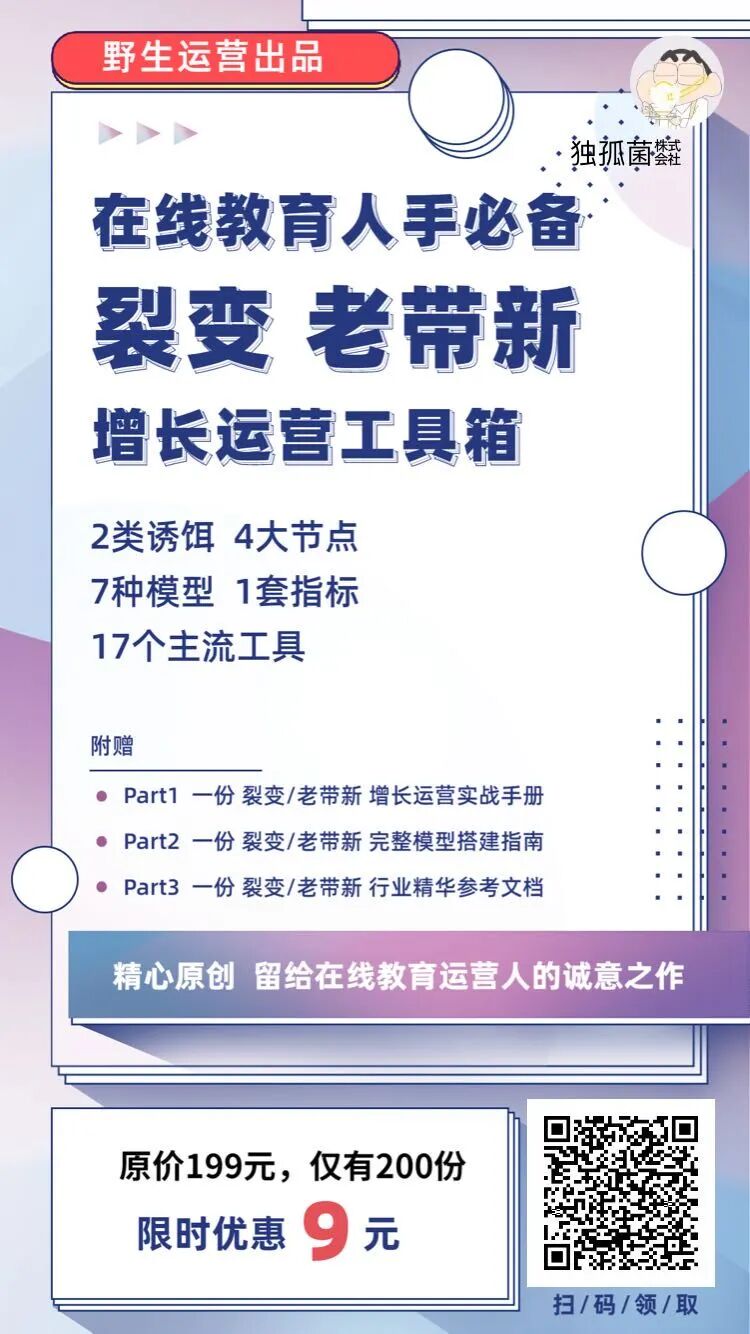 为了让大家做转介绍增长时得心应手,我总结了一份增长工具箱,包含主流裂变老带新工具,以及亲自验证过的老带新模型,扫码9元领取,还开启了50%分销权益