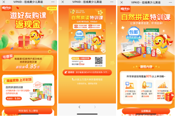 以上这些转介绍玩法还可以在vipkid上面找到,但除此之外,也上新了几个新玩法,本文就将它们依次进行拆解。