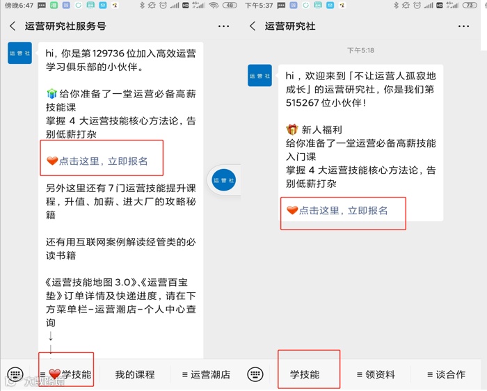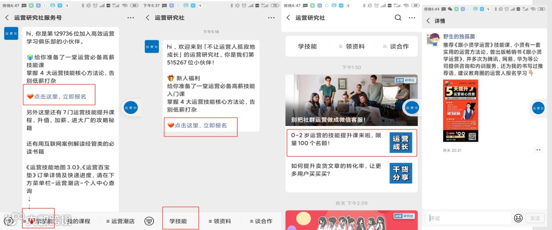2)文章的标题是《0-2岁运营的技能提升课来啦,限量100名》,突出目标人群,以及限量,营造紧迫感。