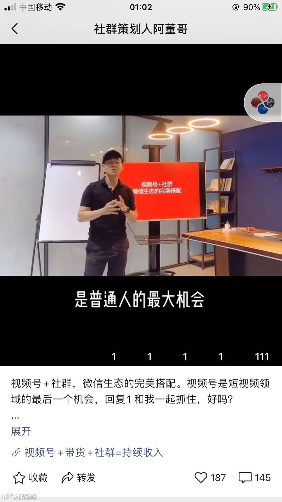a. 通过优质的干货类视频内容,定位清晰地持续输出,让用户在对社群、对视频号运营有更多了解。