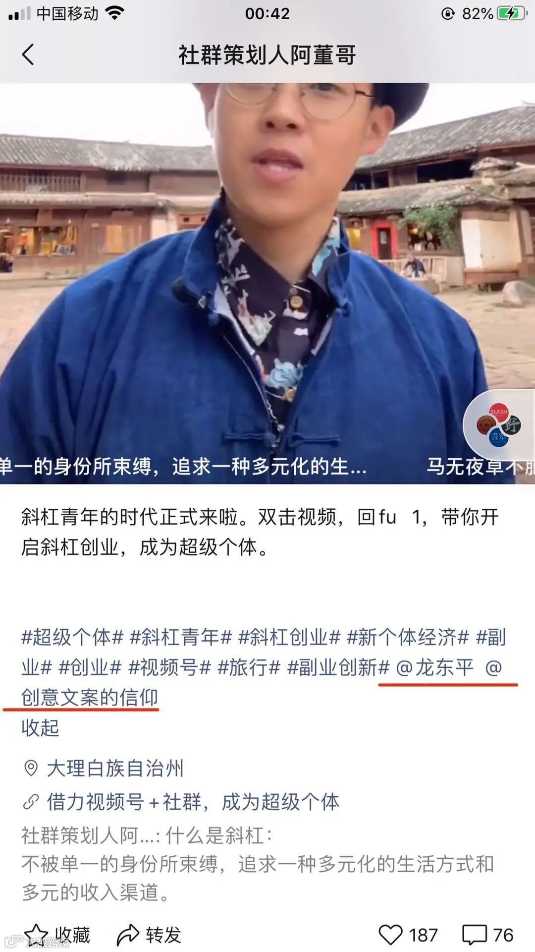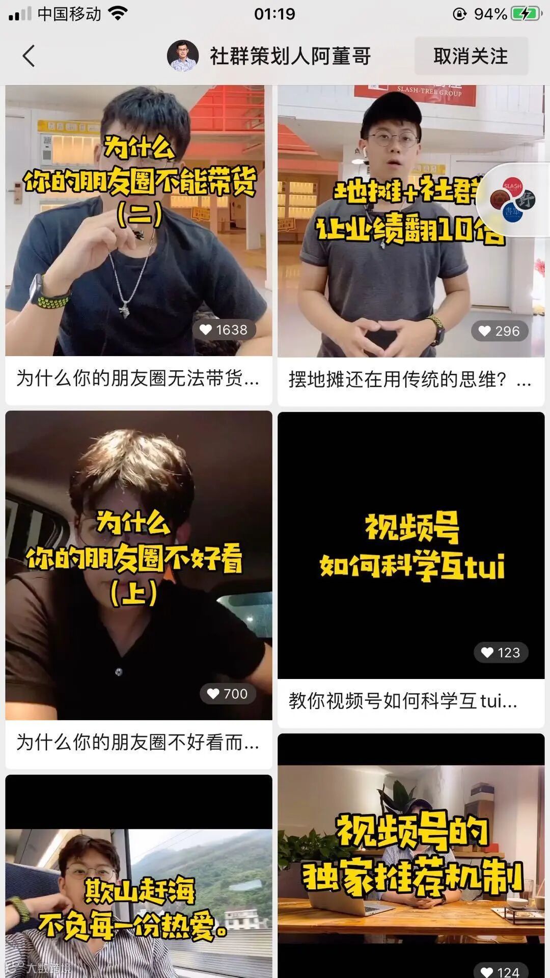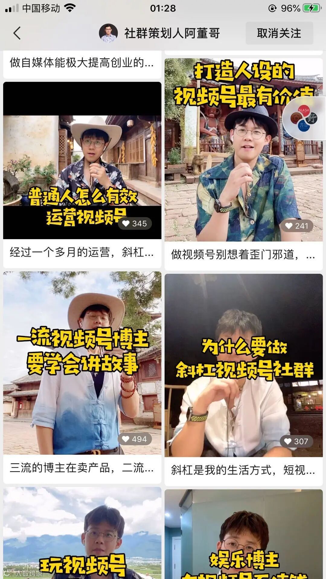 阿董哥,斜杠青年社群创始人,长期研究斜杠青年话题,具有丰富的实战案例和咨询经验。他建立视频号后,通过【视频号+社群】的方式,2个月涨粉2w,同时通过招募了近1000位优质视频号博主。