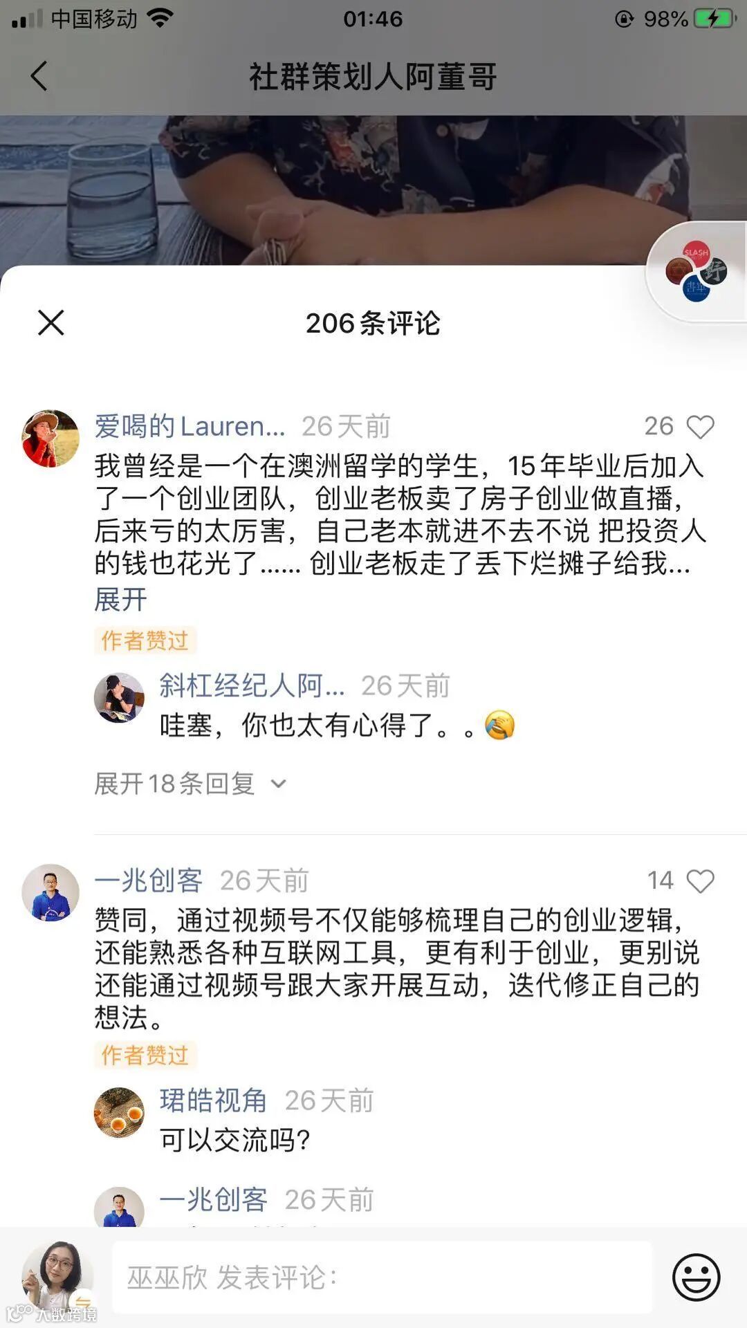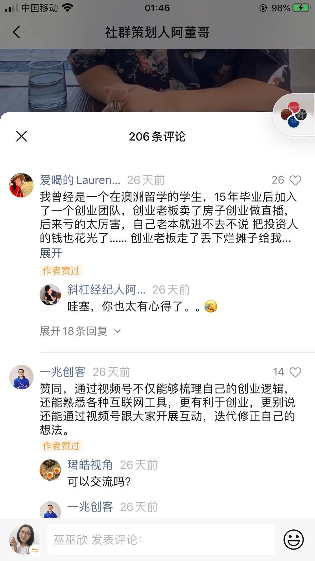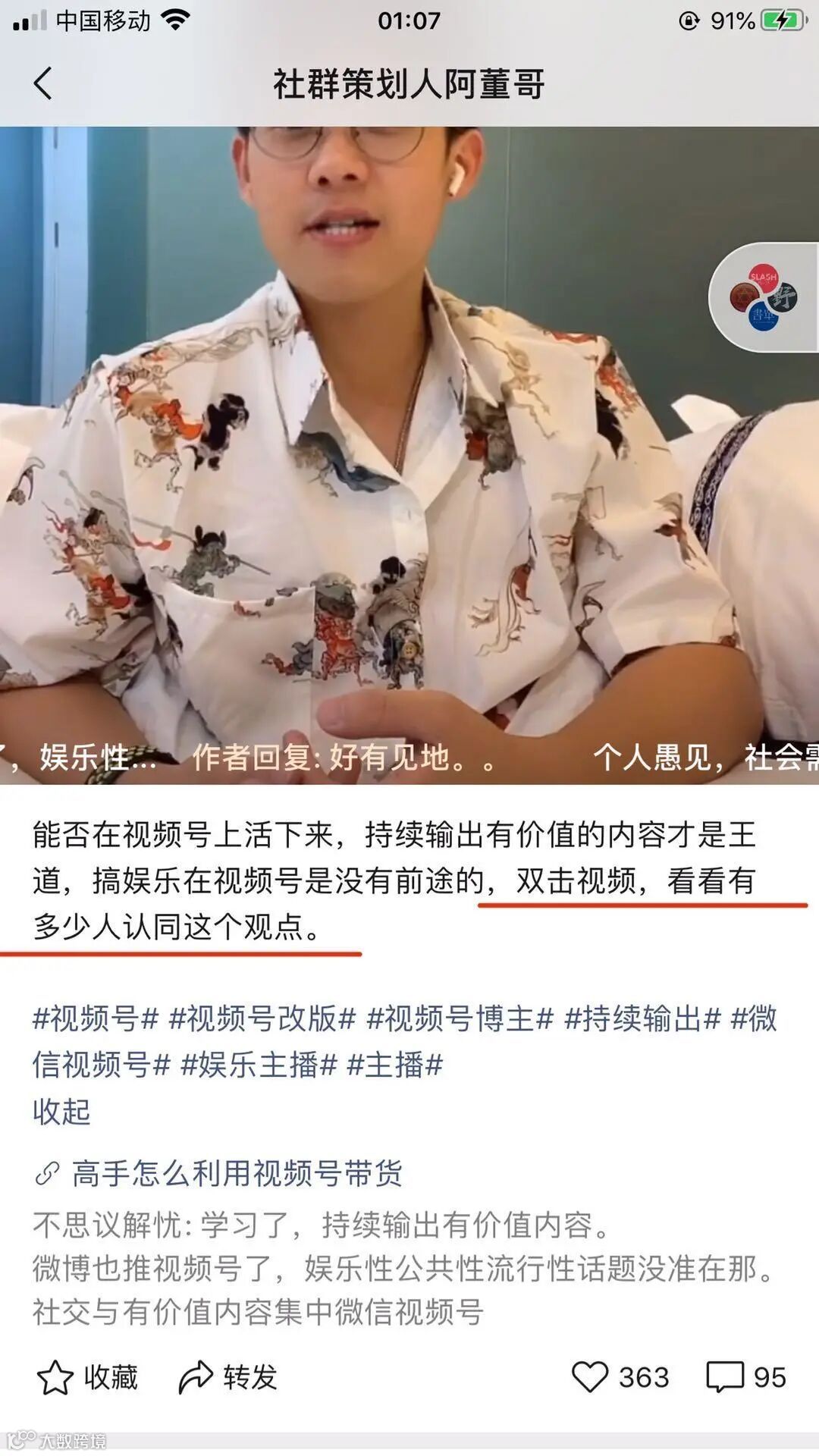 3)视频号的文案评论区
