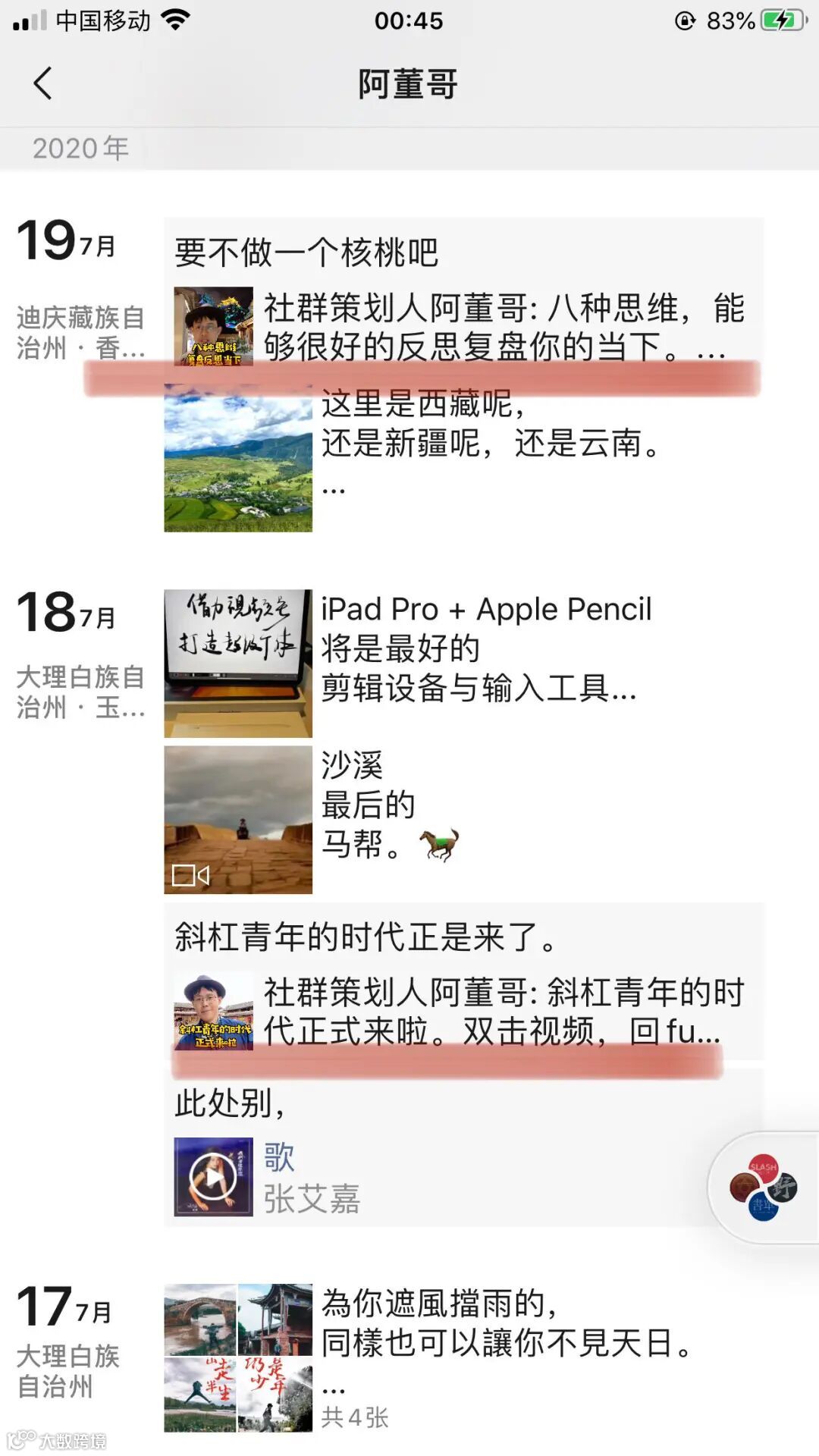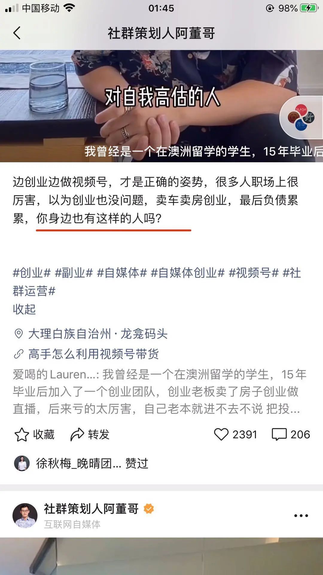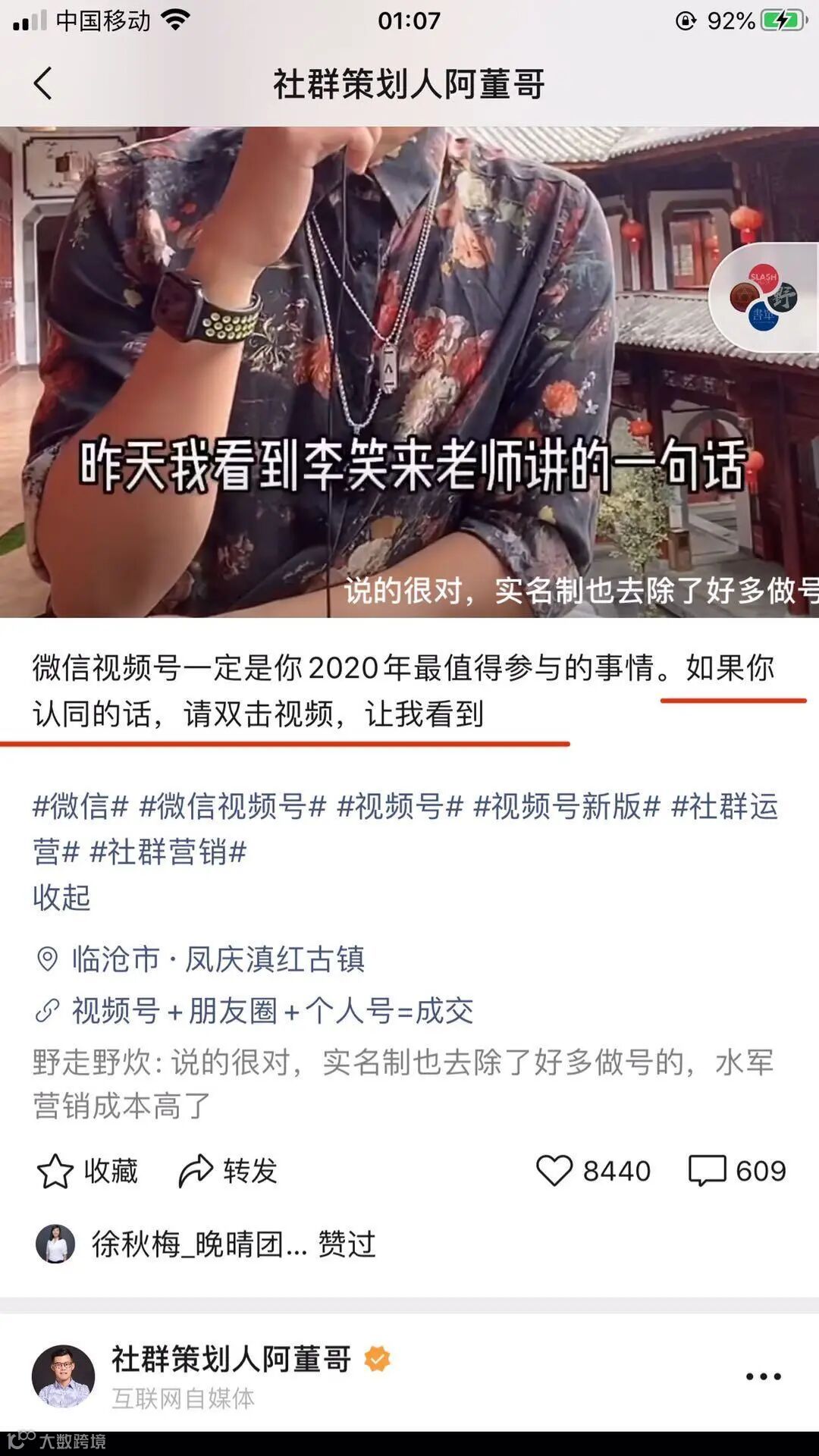 阿董哥会在视频里让人感觉他的圈子很广,不仅有十点读书的林少给做推荐,还能看到张小龙的朋友圈,这种和厉害的人同行学习的感觉让人有收获感。
