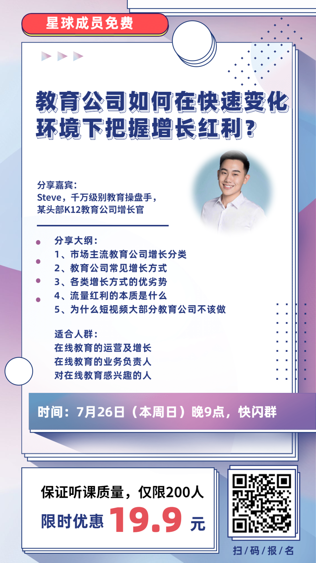 为了保证听课质量,本次限量报名,报名截止明晚(7月26日)20点,扫码报名,过期报名不拉群。