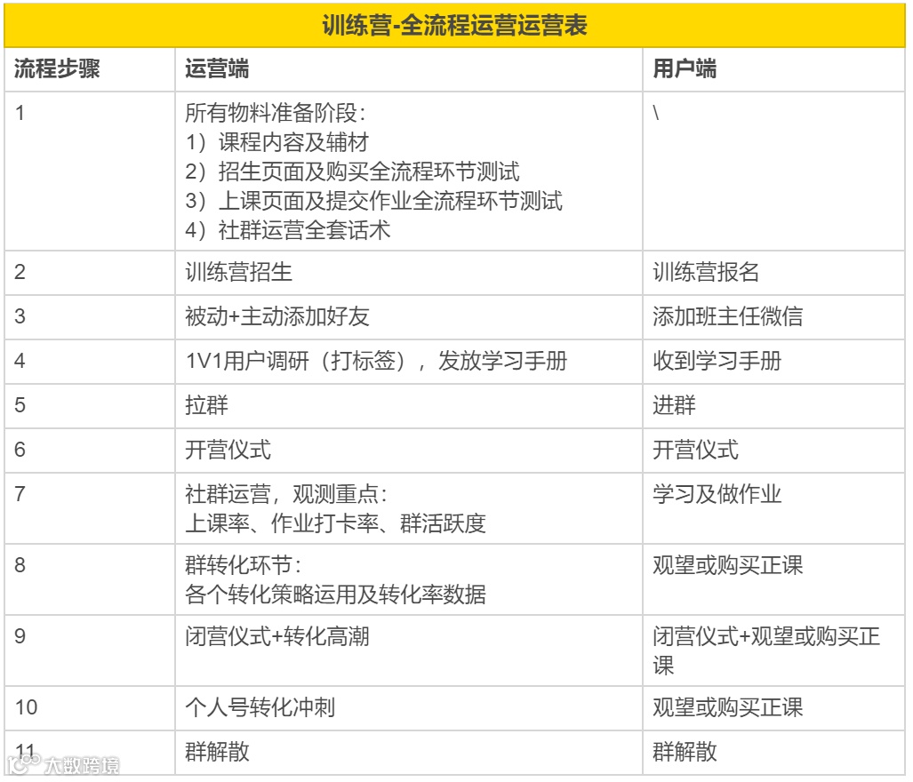 右手运营,主要包括大运营和小运营两个层面,通过抓流程和抓关键点的方式,提升训练营的运营效率。