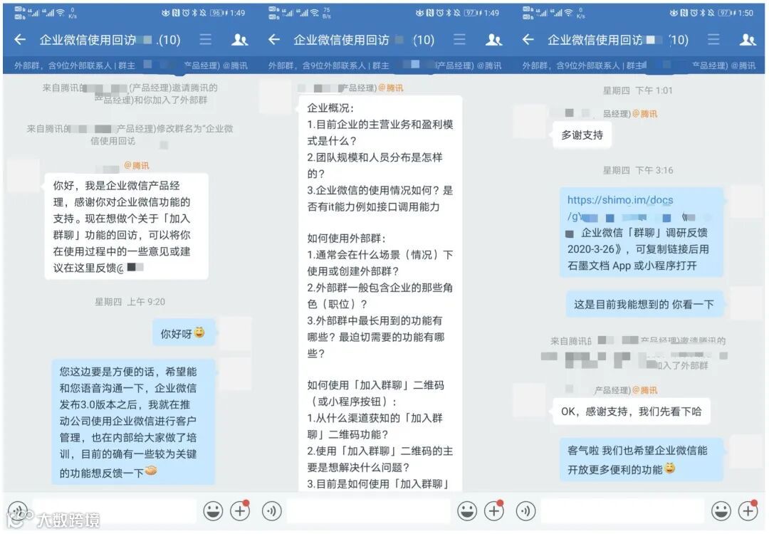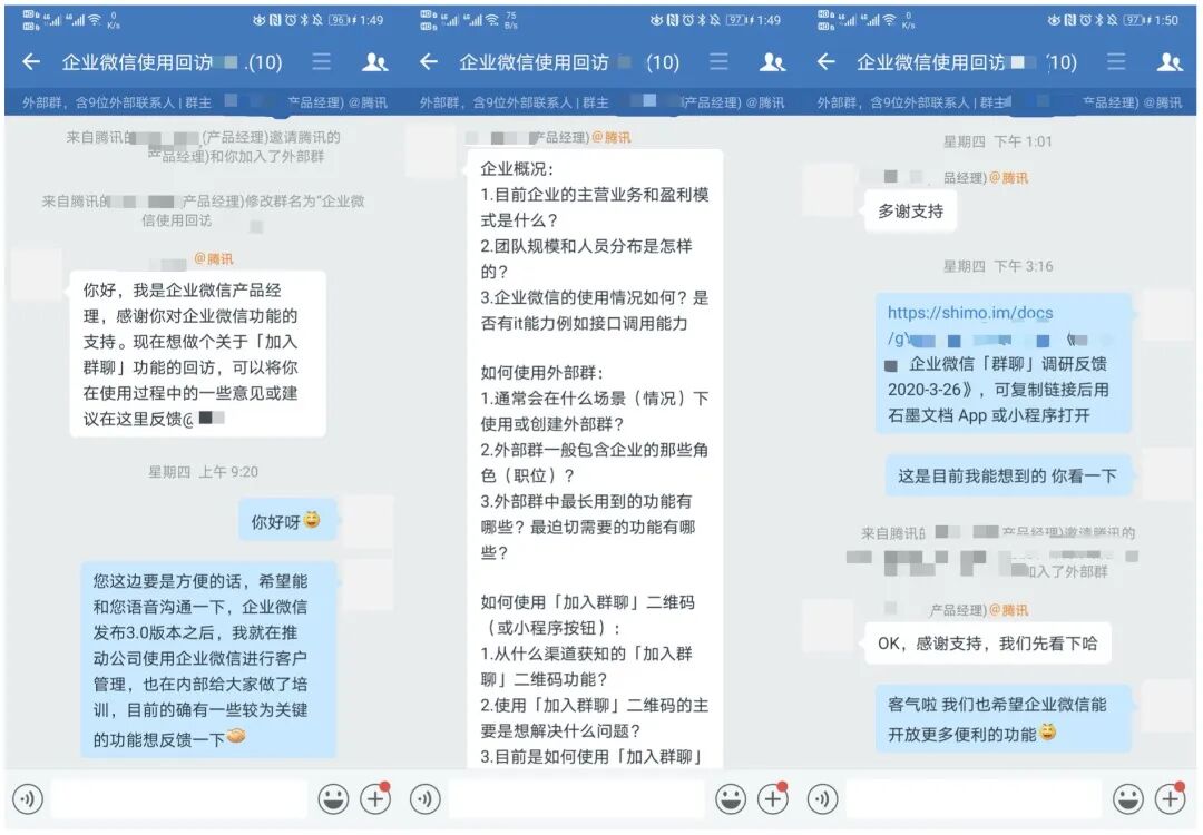 之前企业微信的团队找我做过一次调研,我也提过这个群里关键词回复啊,以及批量修改群公告的其他一系列功能。但是没想到,一周之后,这个群内关键词自动回复的功能就上线了。相信他们在采访其他受访者的时候,大家都有同样的这个需求。所以我觉得企业微信后面一些功能的开放,它也会充分去考量这个我们实际的需求。